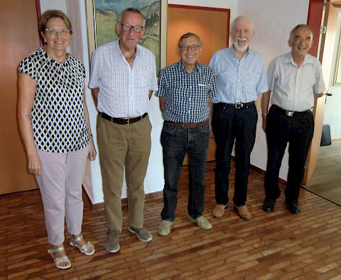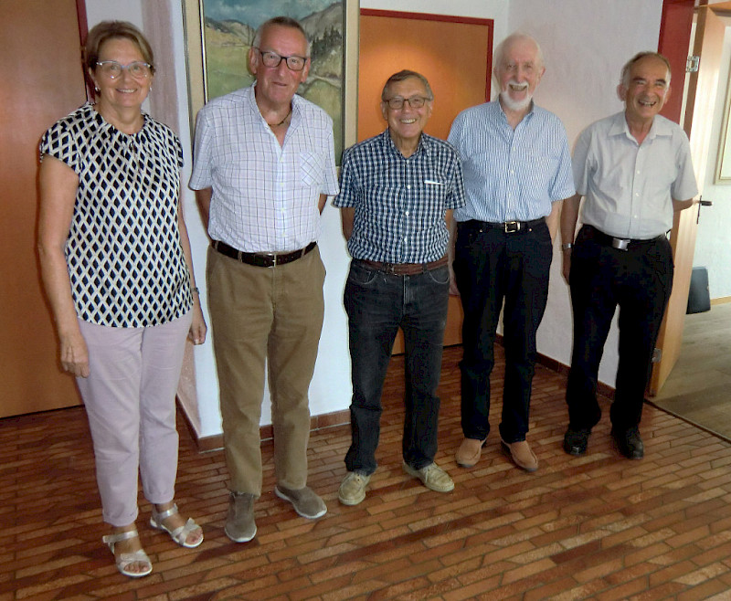 (von links) Helen Isler (Vizepräsidentin), Ueli Röthenmund, (Präsident), Hans Rudolf Scheurer, (Kassier), Walter Angst, (Aktuar), und Martin Schwyter (Obmann Besuchsdienst)